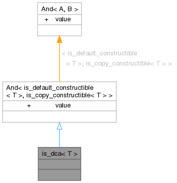 | Static Public Attributes inherited from And< is_default_constructible< T >, is_copy_constructible< T > > | |